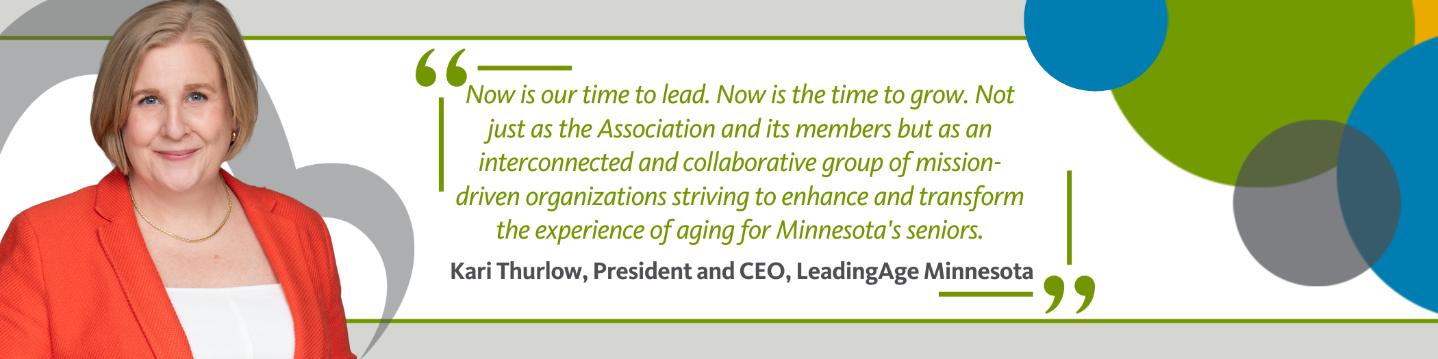 Now is our time to lead. Now is the time to grow. Not just as the Association and its members but as an interconnected and collaborative group of mission-driven organizations striving to enhance and transform the experience of aging for Minnesota's seniors.