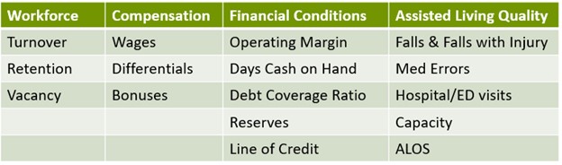 - Assisted Living Quality Measure Tracking Tool: Internal data tracking tool to collect quarterly data to submit to the data portal.